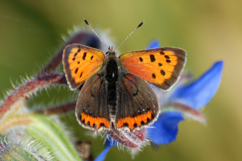 Die Raupen fressen ausschließlich an nicht sauren Ampferarten, vor allem an Krausem und Stumpfblättrigem Ampfer. Die Falter bevorzugen gelbe Blüten zum Nektarsaugen, z.B. Wiesen-Pippau, Scharfer Hahnenfuß oder Wiesen-Platterbse.