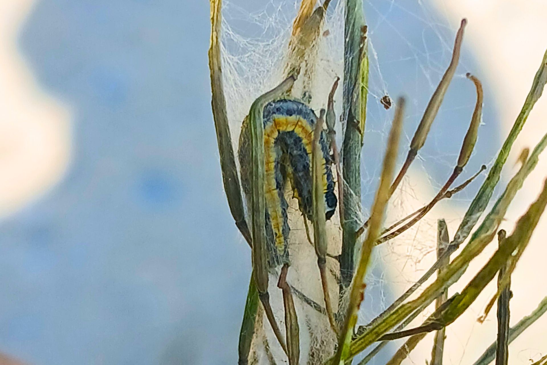 Der Rübsaatpfeifer (Evergestis extimalis) fliegt von Juni bis August. Seine Raupen sind einzeln oder in Gruppen in losen Gespinsten an Kreuzblütlern zu finden. Foto: Frederik Rothe